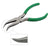 Nose of the plier is bent at the right angle to go under the staple, grab it and pull it out. Made in USA.