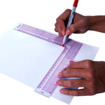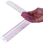 8ths graph with edge in 16ths and centimeters. Transparent plastic square. Laminated for durability.