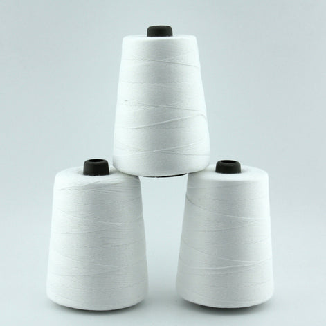 3 cones of 12/4 Polyester White Thread. Each cone is 8 ounces.