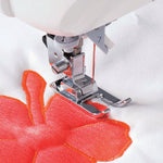 The Open Toe Foot is ideal for satin, applique, taper and decorative stitches. The tunnel on the underside of the foot feeds smoothly over the stitches and the open front gives greater visibility for accuracy.