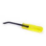 The correct angle for removing staples of any size, from the smallest to the longest leg staples. Manufactured from alloy tempered steel. Electronically hardened working ends. Fluted amber cellulose acetate handle to keep from rolling.